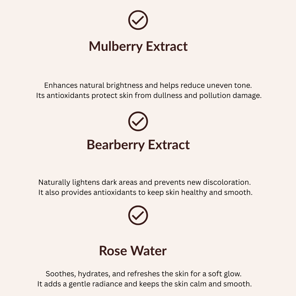 Bearberry Extract β Works as a natural lightener and antioxidant.